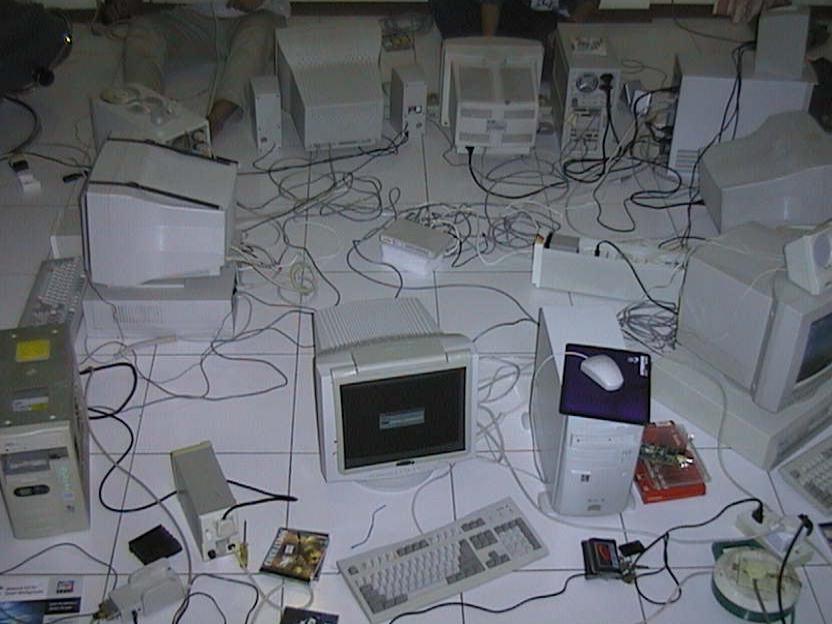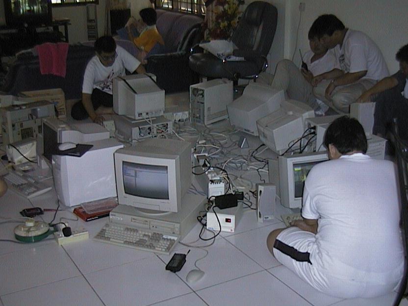 We were supposed to establish a simple network as an assignment. This picture shows the network my friends and I created. Note : The cables look very messy, don't they? |