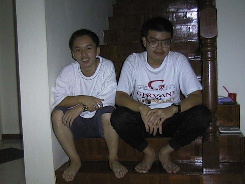 This is a picture of me and my friend, Wong Kuan Pheng. In case you are wondering, I'm the person on the right. In this picture, we are taking a break from our assignment. :-) |